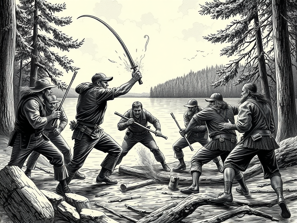 CHATEAUGAY LAKE, N.Y.—The tranquil waters of Chateaugay Lake, long celebrated as a haven for weary souls seeking communion with God’s unspoiled creation, have been defiled by a band of cutthroat marauders whose deeds would shame even the devil’s own bookkeeper. This correspondent has learned, through gritted teeth and greased palms, of a gang of six roughnecks—self-dubbed “The Pine Tar Boys”—who descended upon these sacred woods like locusts clad in flannel and vice.