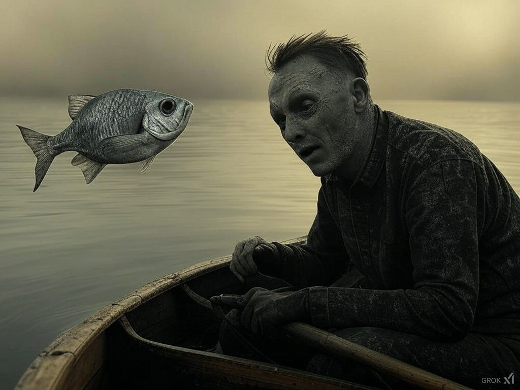 At first, it was a shimmer, like sunlight catching on a distant wave. But the shimmer grew, coalescing into a shape that defied his understanding—a fish as large as a man, its scales gleaming like polished glass. When it moved, its body rippled with eerie light, and Andrew could see himself in its reflection.