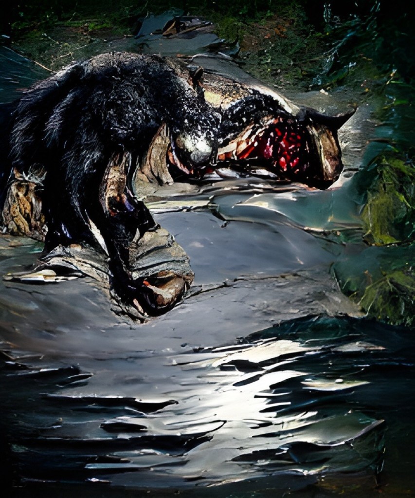 A wendigo of a giant wolf, a black werewolf of course, was now in the midst of them. It seemed the beast had somehow come back to life, and was looking to satisfy its urge to kill with one vicious attack. No one moved, they stood frozen to the ground as one by one, they all succumbed to the beast.