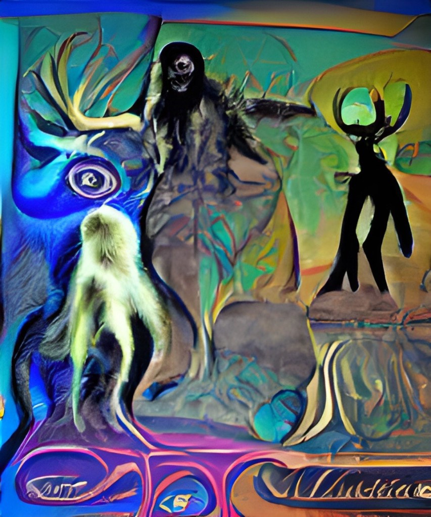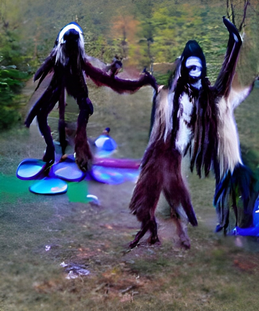 We’re starting to get more worried than we already are. This rave is taking too long. A rave’s supposed to be fun, not long. Wendigos love to dance and shake their booty, not watch people in black with masks standing around doing nothing but waiting for their cue to dance, as we watch from the darkness under the trees, like shadows of the forest, unseen, unseen.