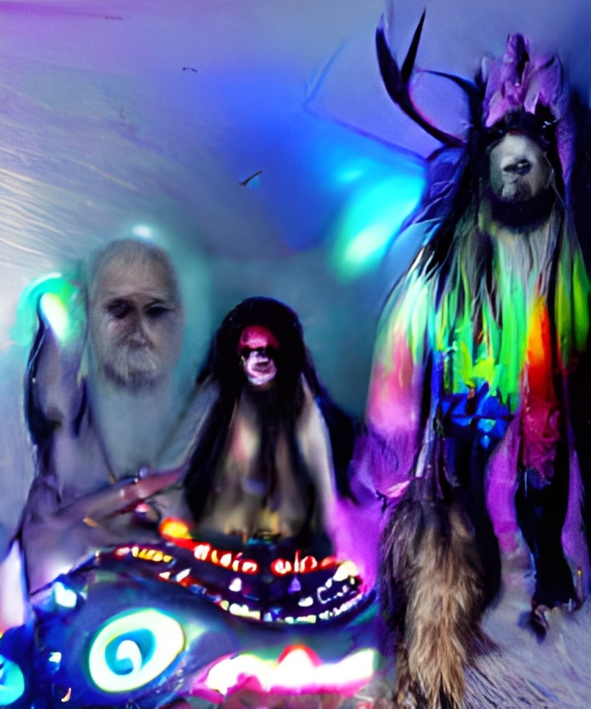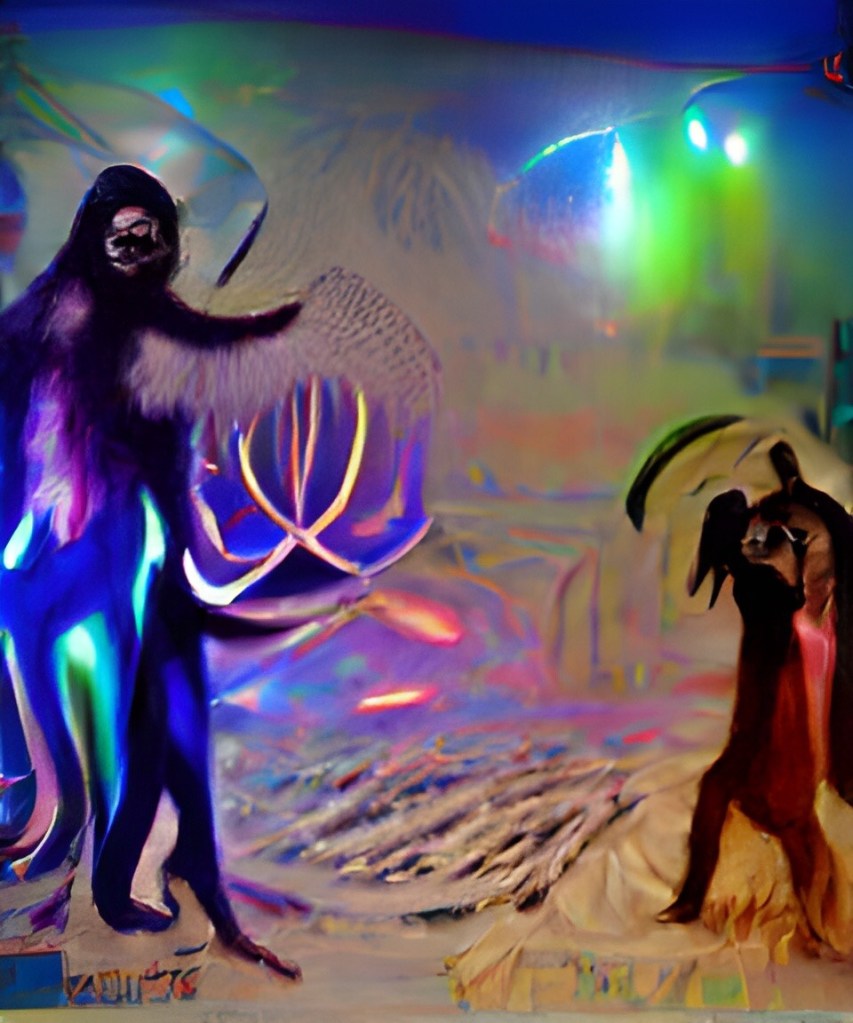 We feel that the crowd is starting to get bored, starting to get a little bored, so bored. We’ve been here too long. We’ve been in the woods too long, with the djinn, too long. We have to move soon. We gotta get back to our home, under the tree and out of the rave. They’re gonna leave us like this and we have no idea how to get back to the forest. We have no idea if we’re in the right direction for the forest. We just don’t know. And that scares us the most. We’re getting very scared now. We’re not gonna be able to hold it any longer. We’re gonna have to go back to the tree and eat some of our magic bark and get back to the place we always go, the place we feel safest.