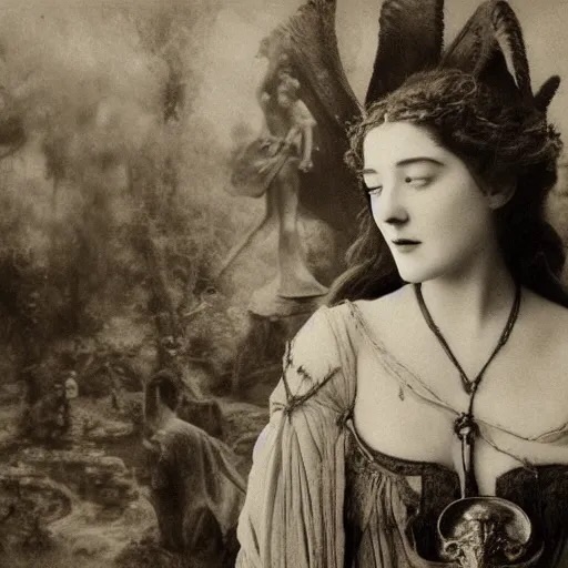 She met the Wendigo in the ‘Great Pond’, at the time of her affair with Jack Clifford, in 1901. They met in the woods. Evelyn was out by the lake, at night. She came across the Wendigo, who is an ancient spirit, a being of immense power and knowledge. Evelyn felt a sense of peace, and understanding from the creature. It offered her its gifts, its help. The Wendigo beccame her partner, her servant in the coming eons, it now helps her and teaches her the arts of its nature. It can create parallel realities, time-travel… It gives her great powers, immortality… And immortality has a price.