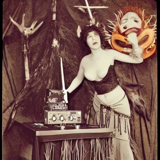 They also have huge parties, at the volcano base, where they drink lots of the Brazen Serpent Whisky Prophecy Juice, along with other esoteric liquids. Evelyn Nesbit and her friends, the Wendigo, the Abenaki Shaman, and the time-travelling Djinn, have a fabulous time listening to the Cosmic DJ, and the music of the stars.