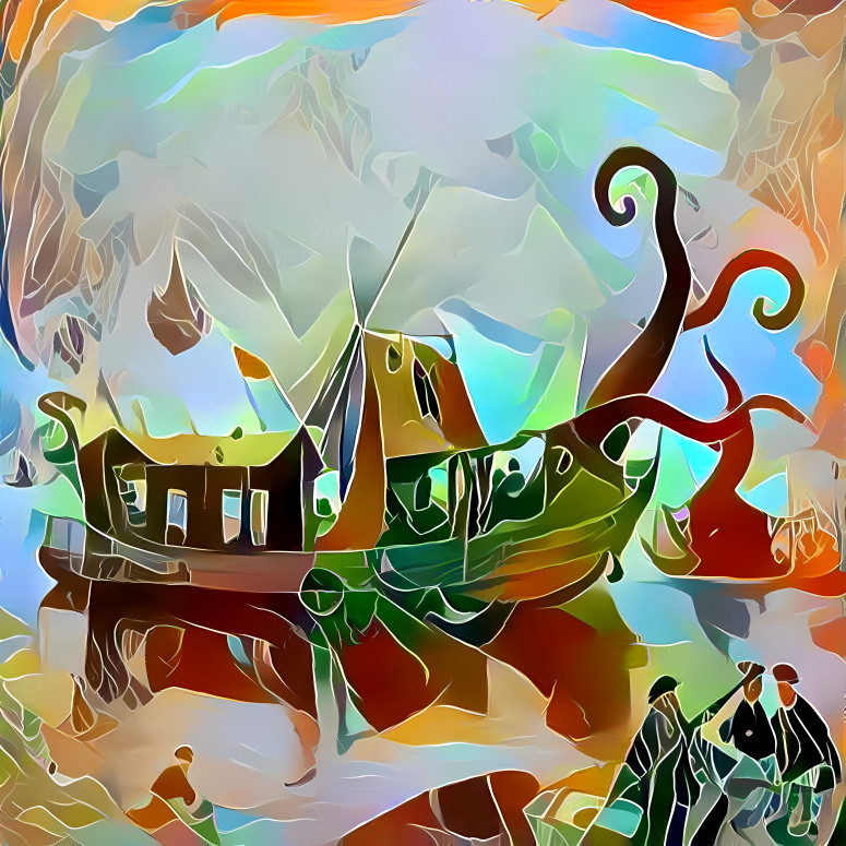 The pirates set sail again with their plunder in hand, their laughter and cheers echoing across the water. The sea serpent watched from the depths as they vanished into the night, eagerly anticipating its next meal.