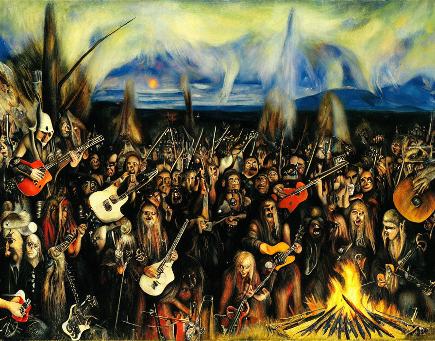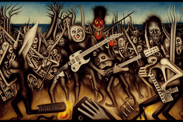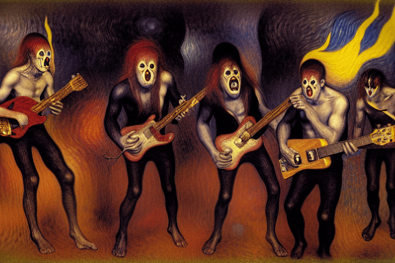 He began to play, fingers moving deftly across the fretboard, the heavy metal riffs echoing across the lake. The crowd moshed and slammed into each other, their wild movements creating waves in the water.