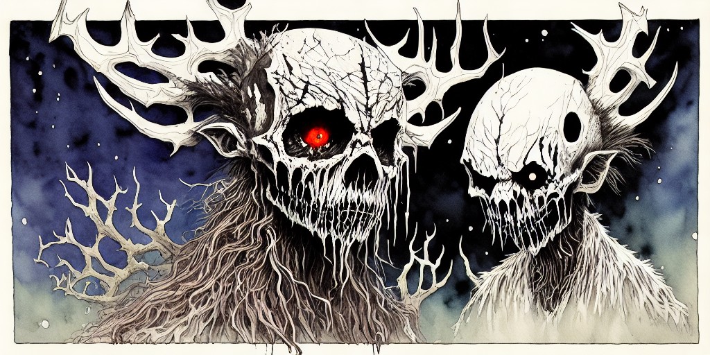 However, it was too late. He had already been claimed by the Gitaskog. Johqu could feel his body changing, his skin stretching and contorting into new forms. He could feel the Wendigo’s hunger and greed coursing through his veins, driving him insane with yearning.