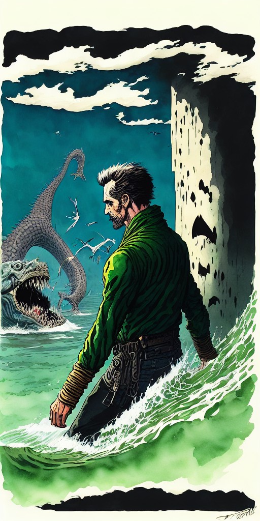 Johqu’s oblique transformation, however, was not total. Johqu saw something that defied logic and reason one tragic night as he stood on the shores of Chateaugay Lake watching the shimmering pulsating of the haunting Aurora Borealis. The Gitaskog had ascended from the depths, looming over him. But something was different about the beast this time. Its scales glowed in an otherworldly light, and its pupils were filled with an odd intelligence.