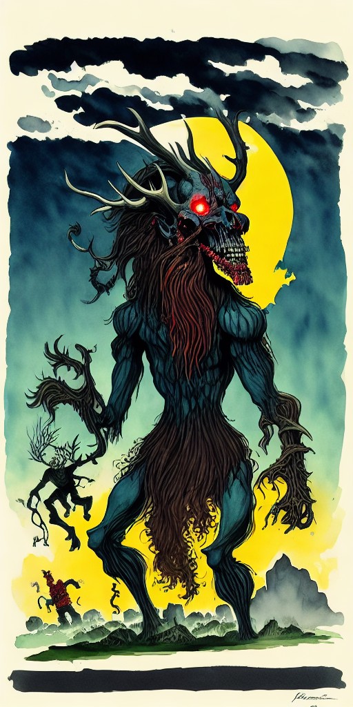 Varthalox, the 17-foot-tall Wendigo, towered over everyone who ventured to cross his path. His massive body weighed over 900 pounds, and his hair was dark brown, almost black, and bristled with every movement he made. His fiery red eyes glowed with a ferocity that could make even the bravest of hearts quiver in dread.