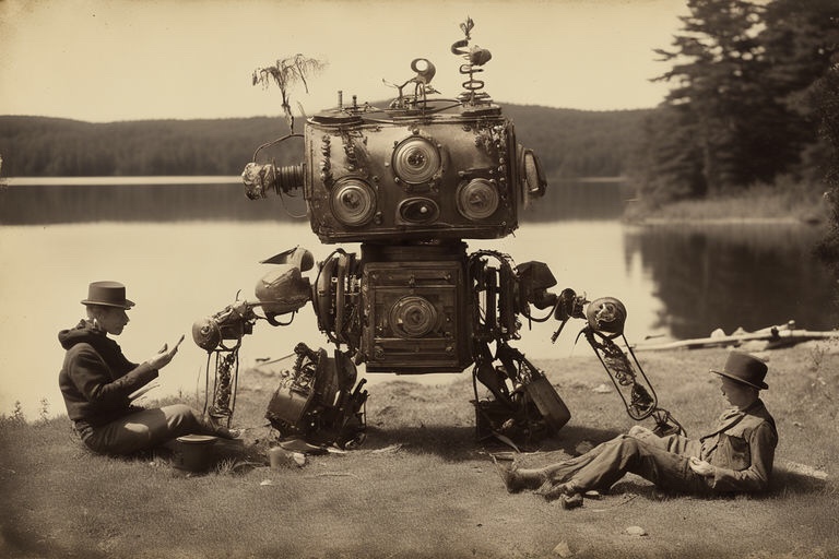 Evelyn, Jack, and Johqu work in a creative flurry. Evelyn and Jack paint lush landscapes, vibrant portraits, abstract patterns. Johqu crafts kinetic mobiles from scrap that churn and dance with uncanny life.