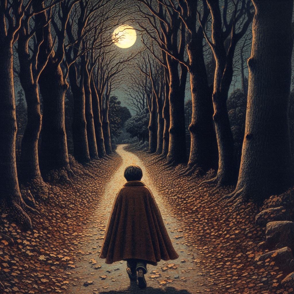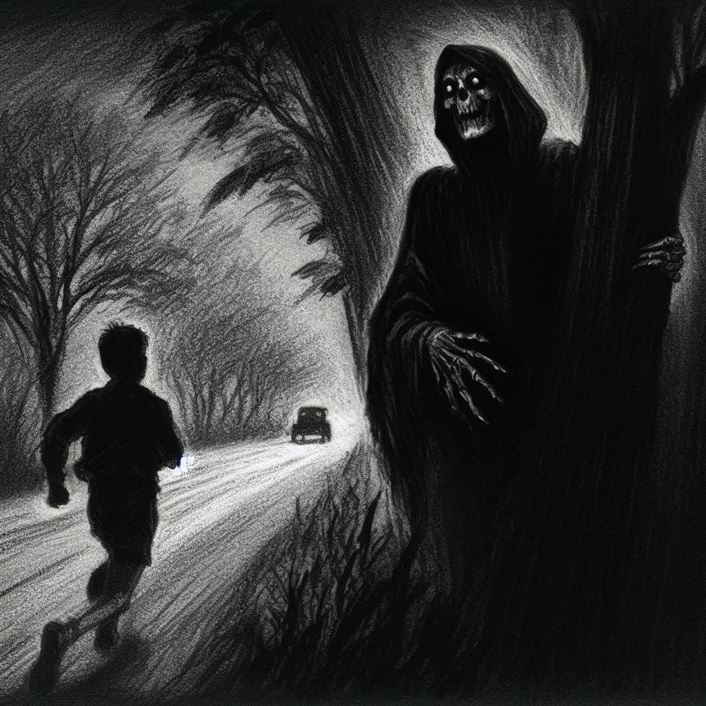 As Eddie scuffed down the road, he caught a flash of something from the corner of his eye. He paused, squinting into the shadowy forest that pressed close on either side. The wind picked up, setting the bare branches scratching against each other like skeletal fingers. Some small nocturnal animal darted through the underbrush – probably just a raccoon, Eddie told himself. But he couldn’t shake the prickle of unease as he hurried on.