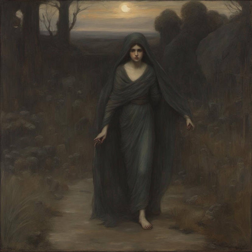 The figure took a shambling step forward. As it passed through a moonbeam, Eddie saw it wore his ma’s face – her sunken eyes, her hollow cheeks. But her kind features were twisted into a grotesque mask of malice. Rotted leaves tumbled from the corpse-thing’s gaping maw as it rasped: “Eddieee…”