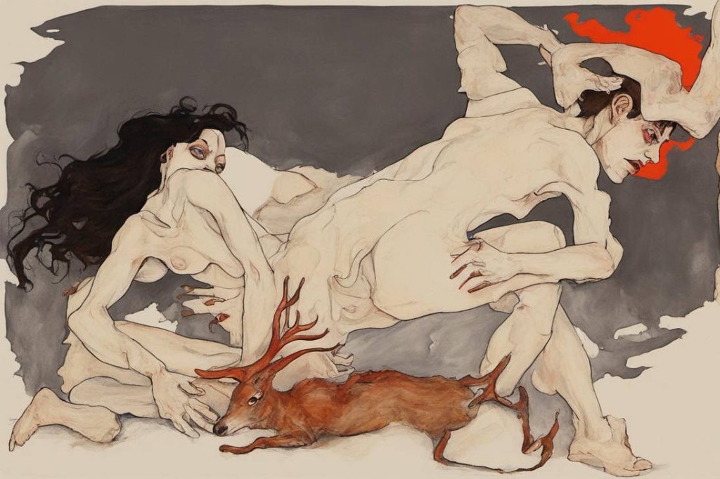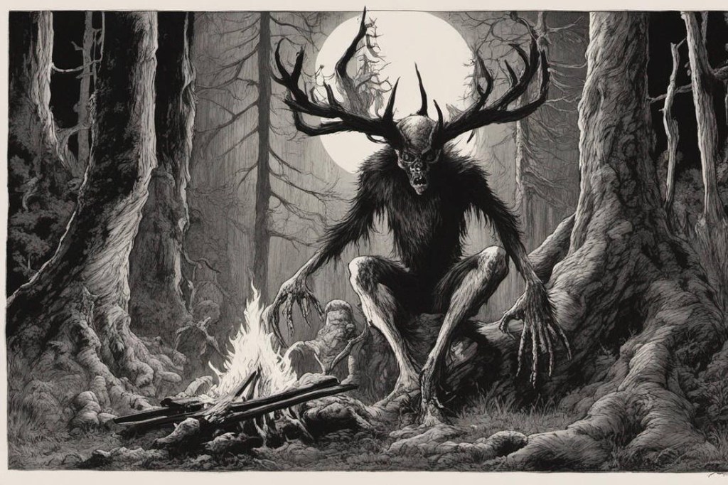 The Wendigo, that mythical fiend born from consuming human flesh, the eternal hunger that drives men mad, had come stalking these ancient woods. My friends described its emaciated flesh pulled taut over its skeletal frame, antlers sprouting from its skull, the glow of damnation burning in its sunken eyes. It moved with preternatural speed between the trees, compelled by an insatiable craving for human prey.