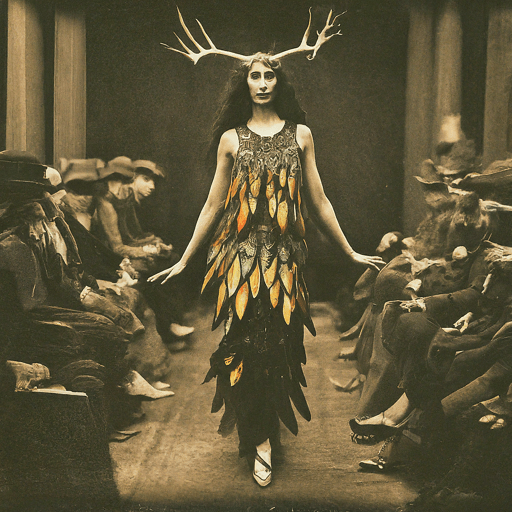 There were gowns woven from spiderwebs spun in moonlit clearings, their shimmering threads catching the spectral glow of will-o’-the-wisps. Jackets crafted from the shed skin of Adirondack loons, mimicking their haunting cries with every rustle.
