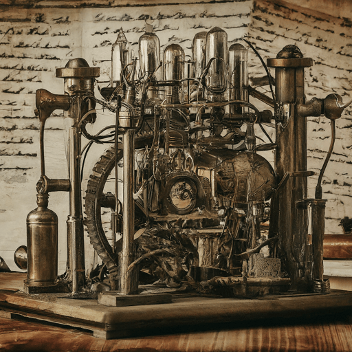 The Adirondack wind hissed like a disgruntled bobcat across Chateaugay Lake, rattling the cracked shutters of Johqu Bogart’s ramshackle cabin. In the firelit gloom, hunched over his infernal contraption, the man wrestled with the gremlins of inspiration. The one-of-a-kind Shatagee Sonic Spellbinder — a visionary tangle of wires, transducers, speakers, oscillators, potentiometers and gears cobbled together by the long-vanished mad genius, legendary Chateaugay Lake electroacoustic music pioneer, Gaston “Gramophone” Gagnon — awaited its master’s dark muse. Tonight’s task: Wendigo Fashion.