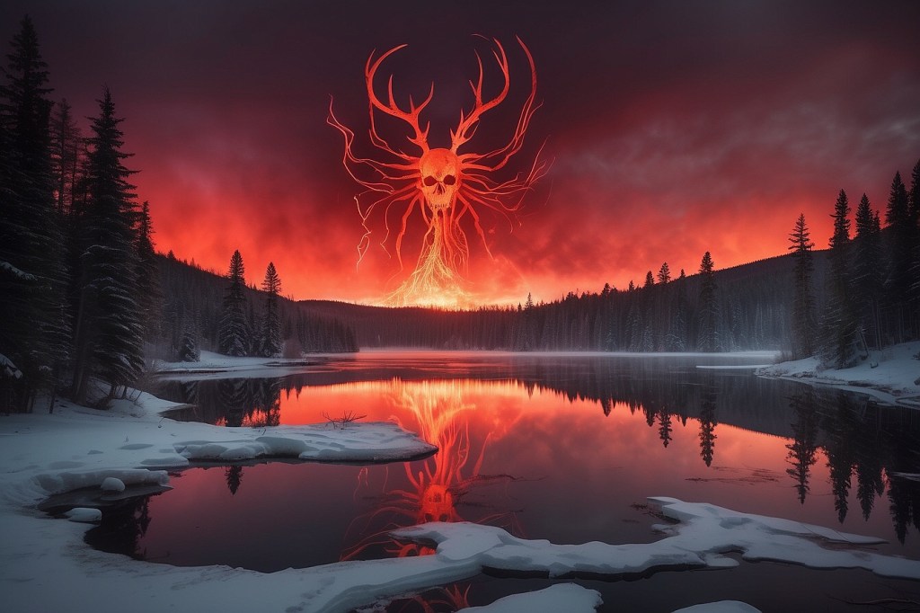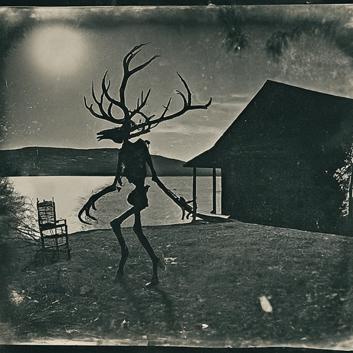 One moonless night, the vortex flared again, but this time, it wasn’t the Wendigo’s mocking laughter that echoed across the lake. It was a haunting melody, woven from loon cries and whispered secrets, rising from the cabin like a spectral siren song. The Wendigo, drawn by the perverse call of its distorted glamor, emerged from the swirling red portal, its skeletal form silhouetted against the moonlit sky.