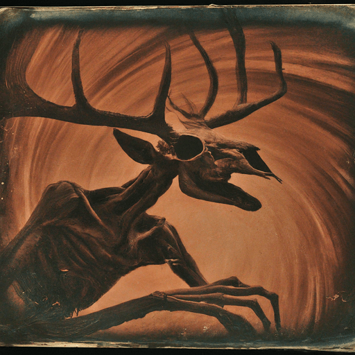 Trapped within the symphony’s grip, the Wendigo’s glamour flickered, its elegance dissolving into grotesqueness. Its skeletal form pulsed with the music, each note twisting its bones, each whisper echoing the darkness within. Finally, with a shriek that tore through the night, the creature’s form shattered, dissolving into wisps of shadow that retreated back into the vortex, the red glow fading as the storm subsided.