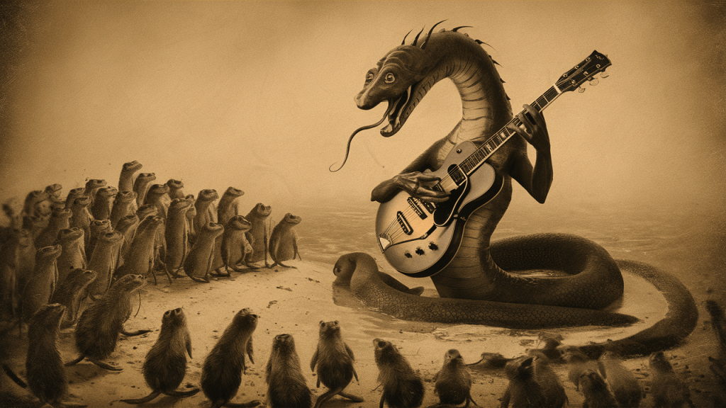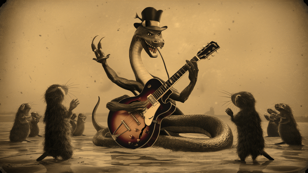 Berenice was no ordinary serpent. Legends whispered of her arrival with the glaciers, a creature from a time before time, bearing the secrets of the cosmos in her reptilian gaze. Her serpentine form stretched for yards, each undulation powerful enough to capsize a schooner. Tonight, however, Berenice wasn’t there to hunt. In her sinuous grasp, cradled like a forgotten relic, was a battered acoustic guitar.