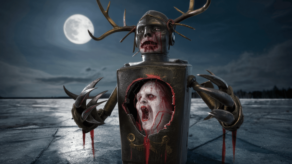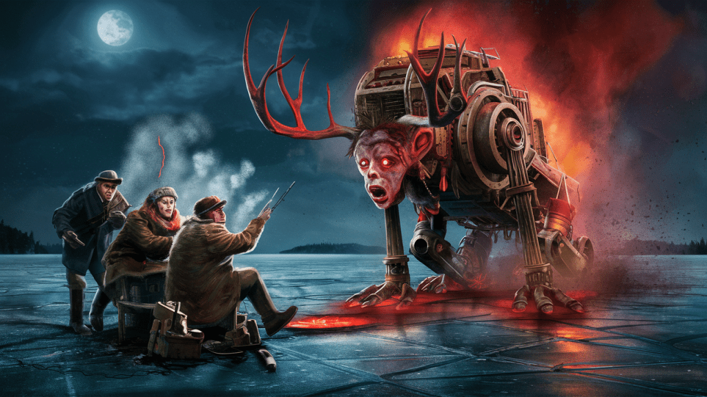 Sheriff Nemier (Spits): Dang Wendigo Robot, that’s what! Those gall-darn floatin’ tracks leading towards the lake, are bigger than any black bear I’ve ever seen!