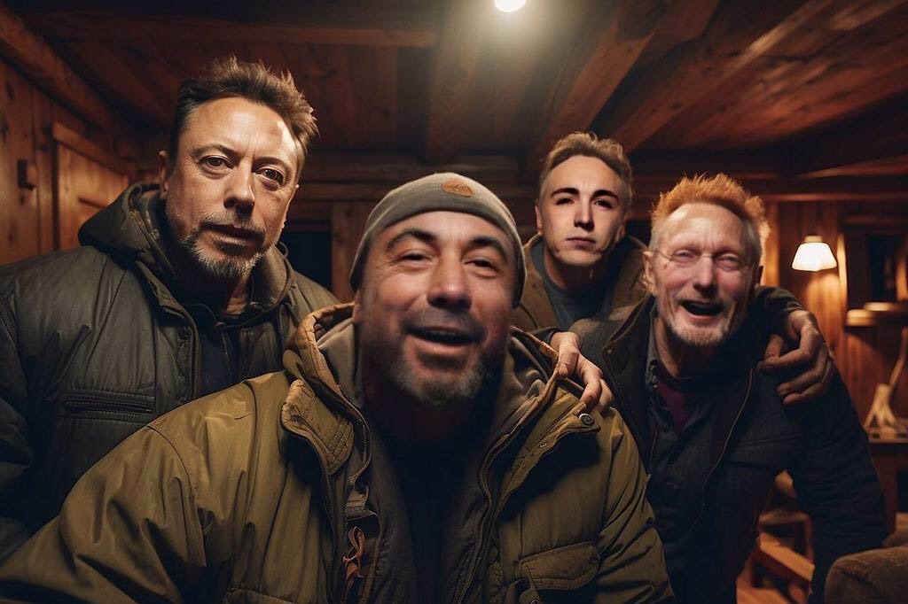 The spacious cabin soon came into view, windows glowing warmly against the cold autumn night. Elon Musk’s gleaming Tesla was parked out front. Our friendly host, fighter and entertainer Jack Clifford, a friend of Rogan, greeted Ginger at the door with a hearty handshake, waving him inside. The interior was rustically furnished but with a subtle air of aristocratic elegance and comfort. A fire crackled in the stone hearth as Clifford handed Ginger a prized rare glass of potent, fully-aged, Brazen Serpent Wendigo Whisky.