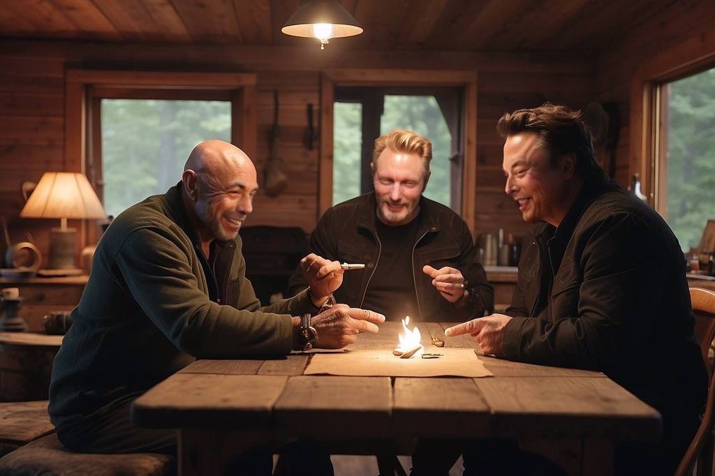 Joe and Elon sat transfixed, occasionally pausing to take sips of whisky and pulls from the exotic Crompsville Thai Dreamscape. The cozy cabin took on an otherworldly quality under the influence of the strong local hybrid.