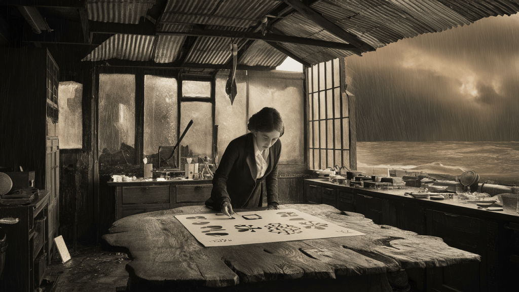 A storm raged outside, mirroring the tempest brewing inside Evelyn Nesbit’s ramshackle laboratory on the shores of Chateaugay Lake. Rain lashed against the corrugated metal roof, the wind howling like a banshee. Inside, amidst the chaotic tangle of wires, flickering bulbs, and half-assembled contraptions, Evelyn hunched over a massive oaken table, the I Ching spread before her like a cryptic map.