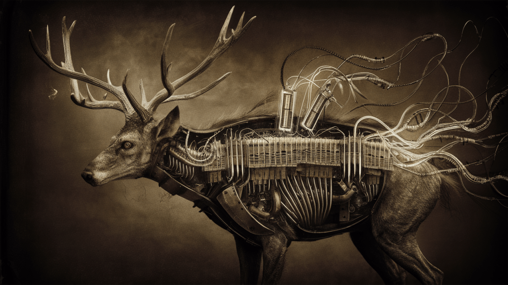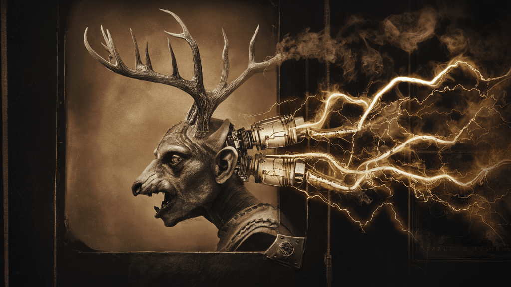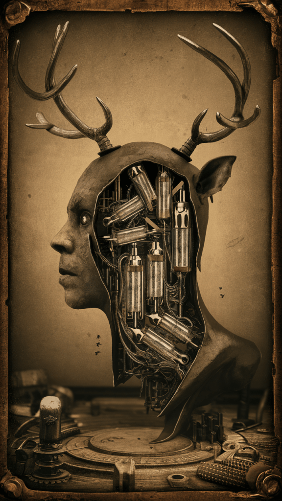 These weren’t your run-of-the-mill robots. Inspired by the anarchic spirit of Dada, Evelyn envisioned hulking, nightmarish figures cobbled together from scavenged parts – the cast-off chassis of 1920s vacuum tubes, wires snaking like metallic veins, the whole thing held together with an unholy alliance of duct tape and rubber bands. But within this ramshackle exterior, she envisioned a marvel – a psychic-neural net, a chaotic symphony of analog circuits that would grant the Wendigos a form of… well, nobody quite knew what. Sentience? Empathy? The ability to play a mean jazz solo, albeit one that would leave your ears ringing and your furniture askew.