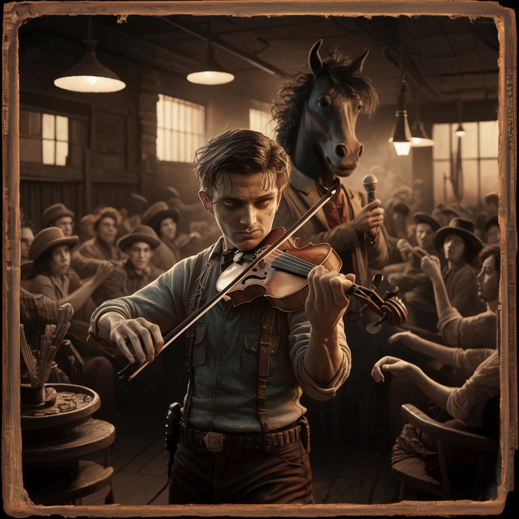 As Jack spoke, Mel’s music grew more intricate, weaving in the horse’s words, each note amplifying the narrative. The crowd, captivated, swayed to the rhythm, their initial drunken stupor giving way to an almost trance-like state. They felt the story unfold through the interplay of sound and speech, an experience that transcended the chaotic brawl that had erupted moments before.