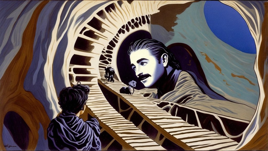 Accompanied by Mr. Jack Clifford, the former boxer, a talented entertainer and reclusive artist with a reputation for dabbling in esoteric arts, Miss Nesbit ventured down the tunnel, unaware that she was embarking upon a journey into the unfathomable depths of time itself. The passage twisted and turned, spiraling deeper into the earth, until at last, it opened into a vast, subterranean chamber—a hidden gallery, unknown to any living soul.