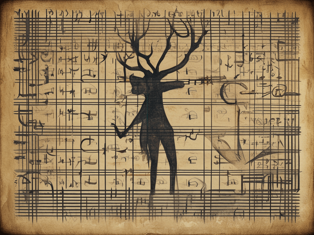 This speculative notation system showcases Stockhausen’s innovative approach to music, blending traditional elements with avant-garde concepts and folkloric inspiration. The “Magical Wendigo Square” serves as a testament to the composer’s fascination with mysticism and his alleged encounters with Chateaugay Lake’s peculiar musical legacy.
