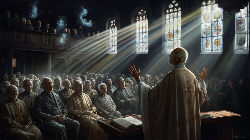 Even our beloved M.E. Church has not been spared from these otherworldly influences. Reverend Grant’s sermons have taken on a hypnotic quality, blending Christian doctrine with Eastern philosophy in a manner that both captivates and confounds his congregation. Many report leaving services in a trance-like state, filled with visions of cosmic truths and universal harmony.