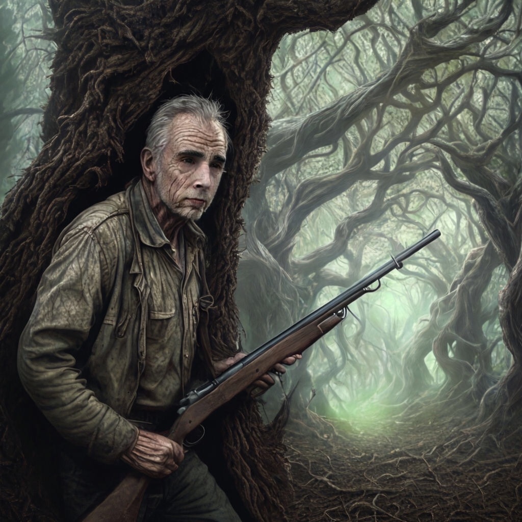 Old Fred Shutts, rifle in hand, stepped out from behind a twisted oak as though he’d always been there, waiting for just this moment. “Not so fast,” he growled, his voice low and rough like gravel grinding underfoot. “Mike and his pals tipped me off about this sorry lot. They’ve been hitting the Brazen Serpent’s whisky again, the kind that doesn’t just burn going down but burns straight through to the soul. Makes ‘em monsters, it does, Wendigos in mind and body.”