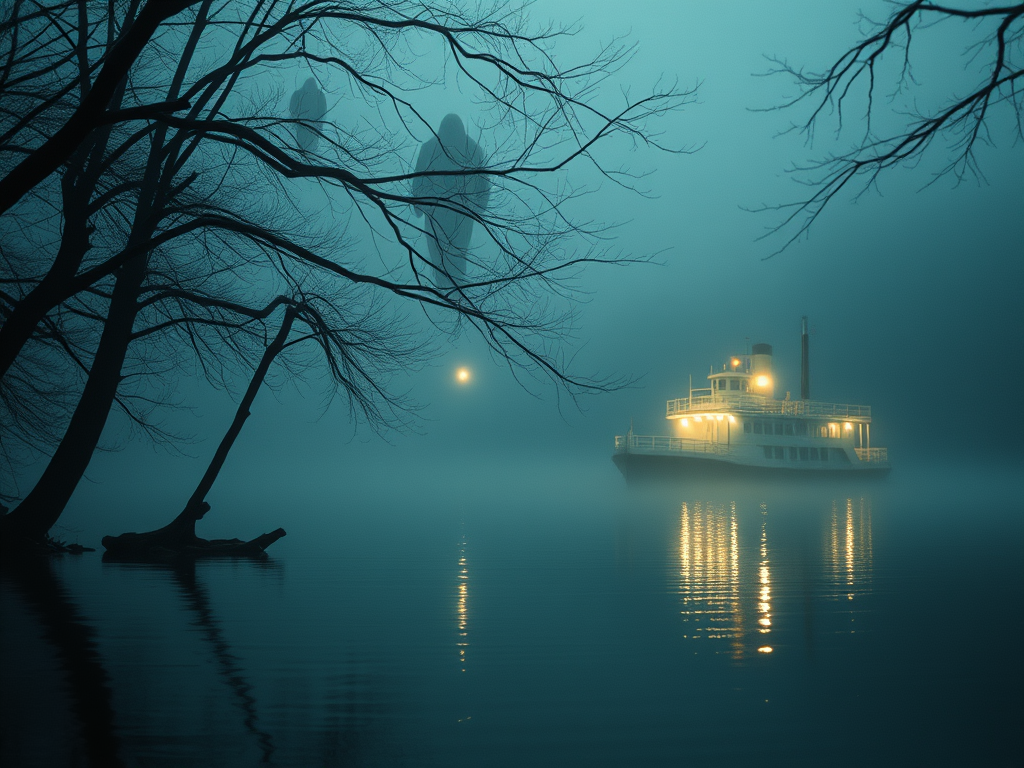 Listening to the story of that spectral steamboat, the “Adirondack,” emerge from the fog was like being transported back to the ghostly shores of my childhood. The way the tale unfolded, capturing the essence of Halloween with its eerie atmosphere, reminded me of my own encounters with the lake’s haunted past. Who among us has not heard the whispers of ghostly apparitions lurking within the woods or felt the chill of the Gitaskog’s eyes upon them? These stories are etched in our community’s history, from my grandfather’s tales of summer visitors to the more recent accounts of those who dared to traverse the haunted waters on All Hallows’ Eve.