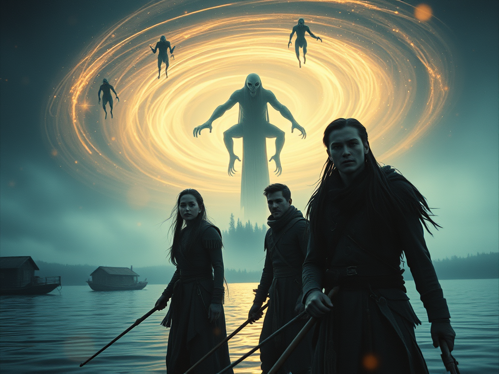The lake’s game began to vanish, as if repulsed by the island. Plants near the shore withered overnight, and the settlers’ dreams were plagued by cryptic visions: a stag with antlers of flame, a woman’s face twisted into a Wendigo’s mask, and an endless spiral swallowing the stars.