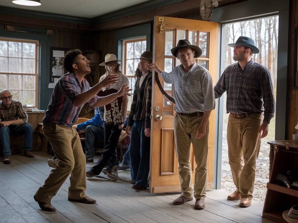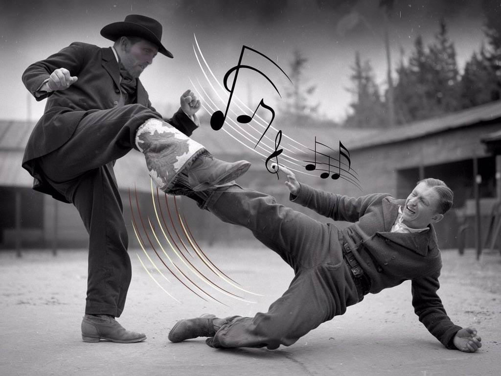 Before Darius could muster a reply, big Miles Miller stepped forward. At over six feet tall and with hands like shovels, Miles didn’t need to say much to make his point. He grabbed ‘Big Lige’ by the scruff of his considerable neck, and hauled him toward the door as if he weighed no more than a sack of Carter’s No. 5 potatoes. Mike tried to step in, but Nate, quick as a flash, tripped him with a perfectly timed kick. Mike landed on the floor with a thud, and Geraldine, still seated at the piano, raised an eyebrow but didn’t stop playing.