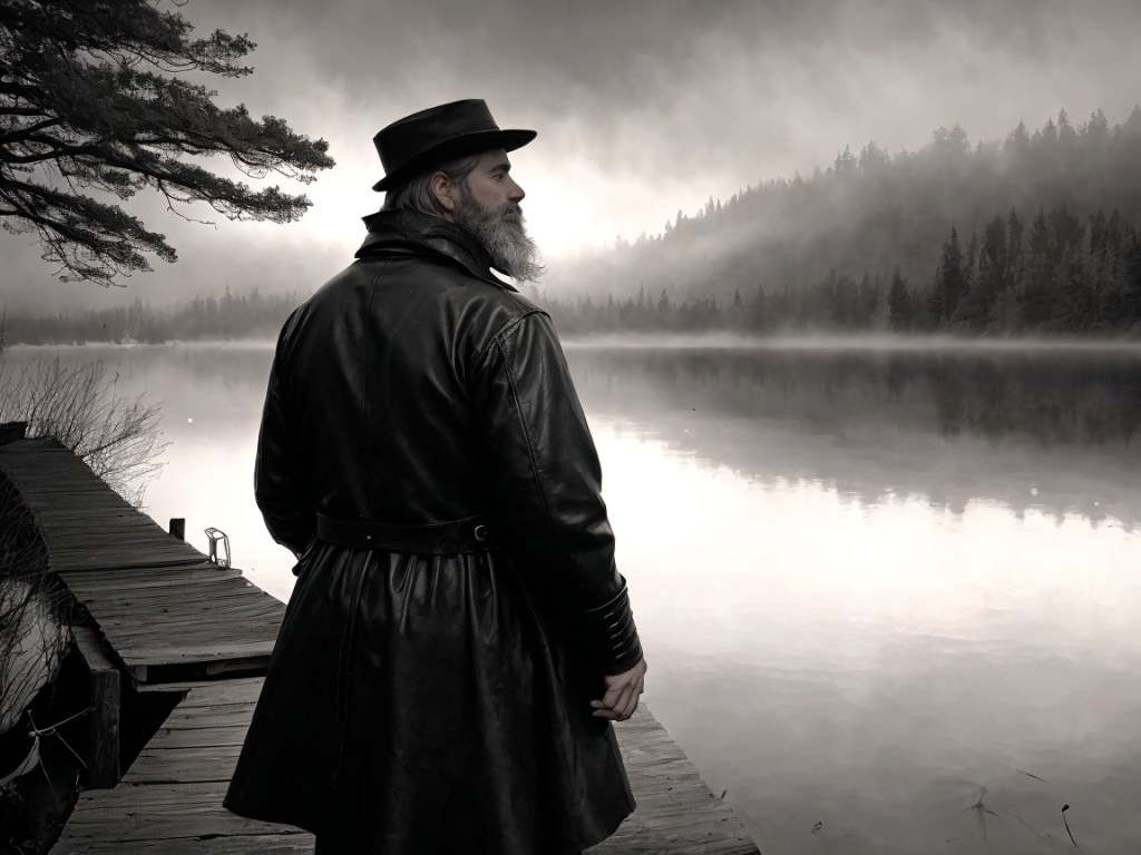 Elwood Pratt, the stubborn descendant of the original settlers, stared at his reflection in the lake. But the face staring back at him wasn’t his own. His features, still rugged from years of felling trees, had smoothed out, his skin stretching backward into youth. His beard vanished, and for a fleeting second, he caught the eyes of a boy barely ten years old—his own face from a time forgotten. He shuddered and pulled his hat down lower, but the damage had been done.