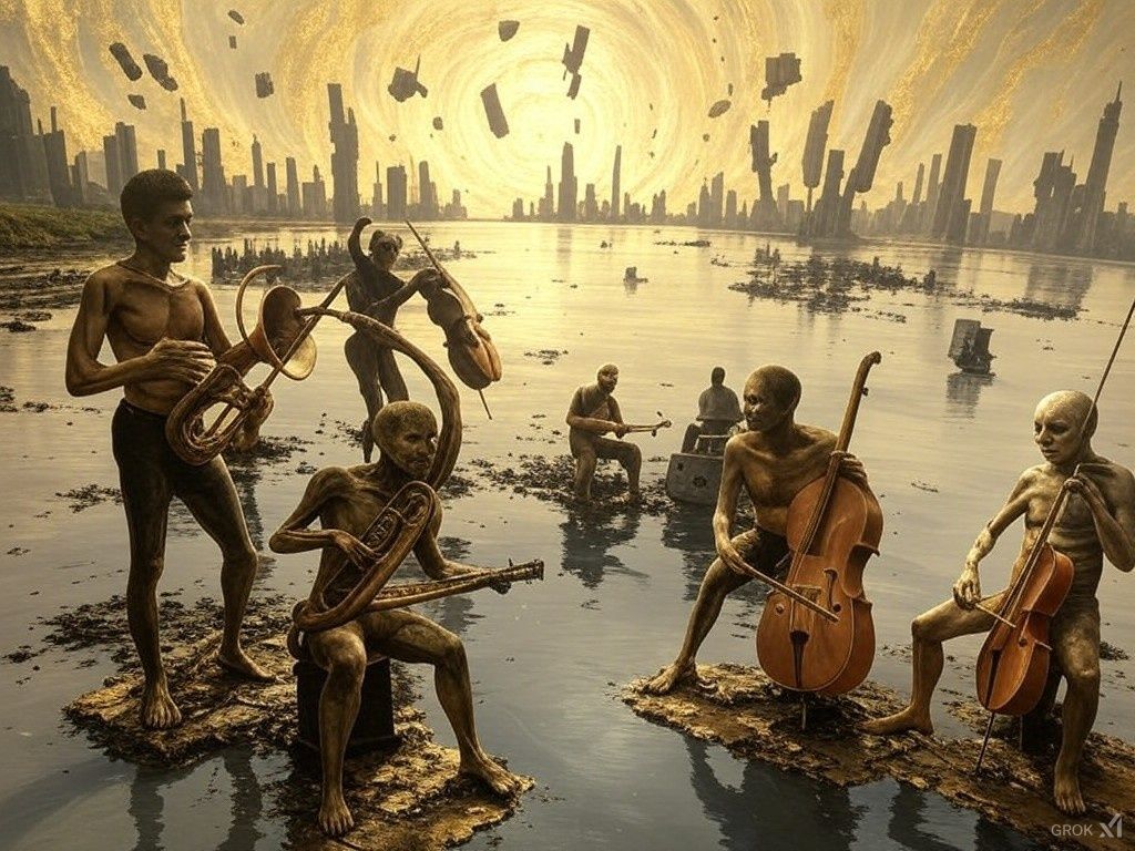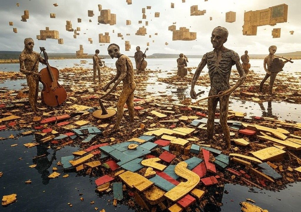 For now, we are left with only these fractured blueprints, scattered notes, and the eerie refrain of distant music carried by the wind—a reminder that sometimes, the true architecture of reality lies in the spaces between the notes, in the shadows cast upon the waters.