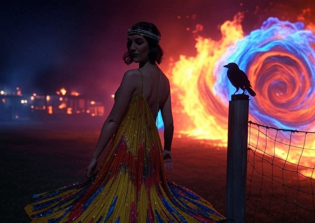 “She is fire,” he muttered, his eyes wide with a fear that seemed to burn from within. “And she will burn you if you let her. But it is not just your skin. No, she will burn something deeper. She is not of our time. She is from somewhere before and somewhere after, and she calls to us from the flames.”