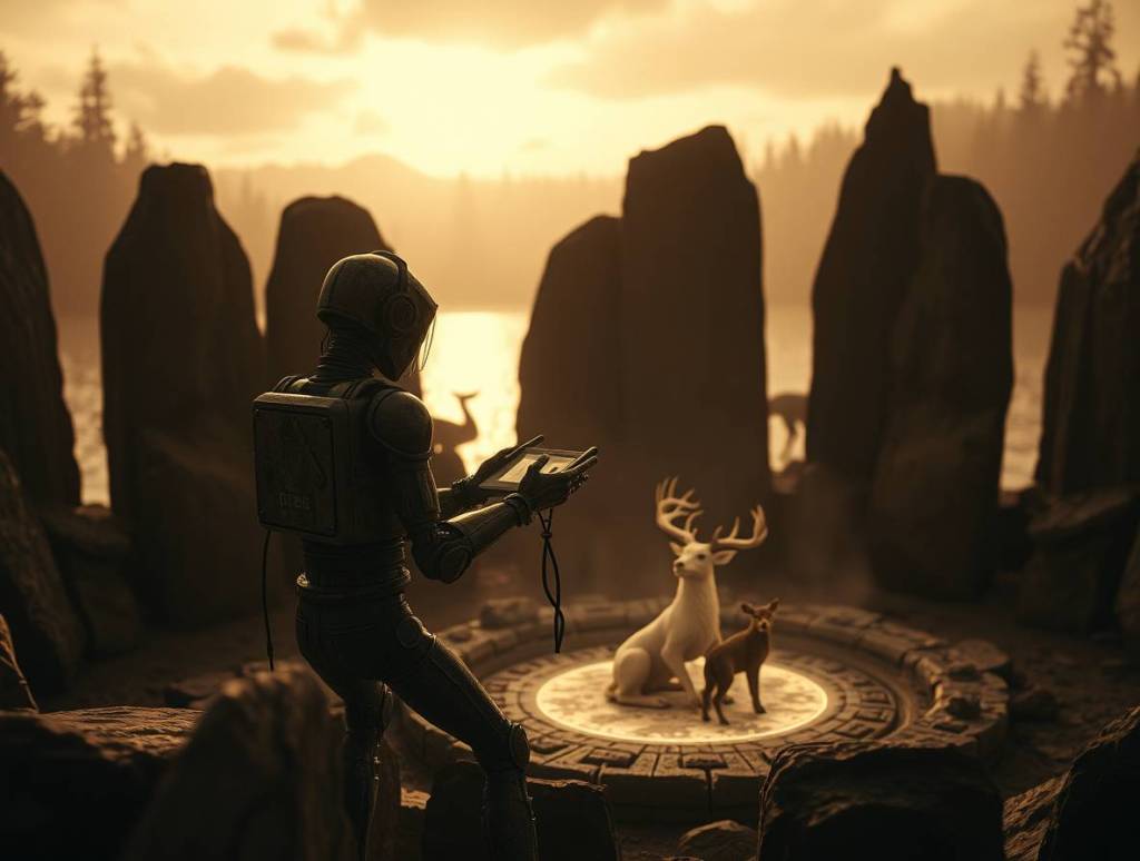 I approached hesitantly, my footfalls muted by the earth’s own hush. As I stepped into the circle, the very air seemed to tighten, vibrating in resonance with a frequency I could not fully comprehend. The pulse. It thrummed in my very bones, in the metal of my frame, as if the land itself reached into me, seeking to know my purpose.