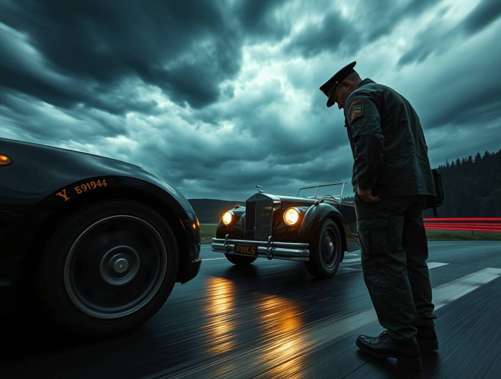 Meanwhile, on the outskirts of town, in the shadows cast by the tall pines, a soldier, weary from battle—though what battle it was, I could not say—focused intently on the wheels of a luxury vehicle parked near the old mill. His eyes tracked each rotation, as if they held some secret knowledge. There was a look of profound concentration on his face, though whether it was out of reverence for the car or an inexplicable, almost mystical connection to it, I cannot say. As he stared at the gleaming chrome, his hands, calloused from years of service, twitched involuntarily. The entire scene, under the oppressive grey skies, seemed to be painted in hues of absurdity.