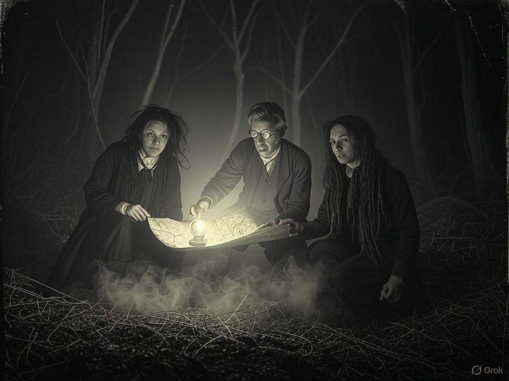 The night’s inquiry began with a most unwholesome silence. No crickets sang. No owls called. The wind stirred the trees, but they did not rustle—rather, they seemed to breathe.