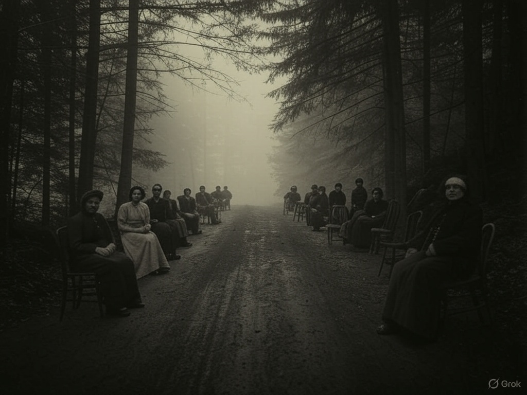 Now, de town’s unofficial detective, old Madame Babineau, she’s been around de block more times than a lost boot, stepped forward. “Mes chers,” she declared in a voice raspy as de bark on de old pines, “dis ain’t just ’bout sittin’. It’s de silent watch, de gatherin’ of souls to keep secrets safe from de pryin’ eyes of government men!”