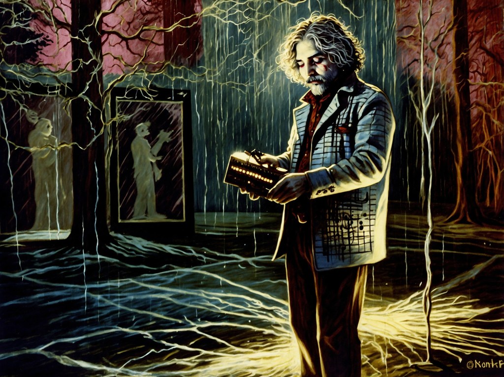Now, I know Jack’s right, in the way only wrong people are. So I start detunin’ the oscillators on my pocket synthesizer, real gentle-like, till they’re staggerin’ ‘long like drunks at a barn dance in six-four time. And lo—lo, mind ye!—a door opens in the sound itself, a kind o’ shimmer ‘twixt frequencies, like the forest is breathin’ in reverse.