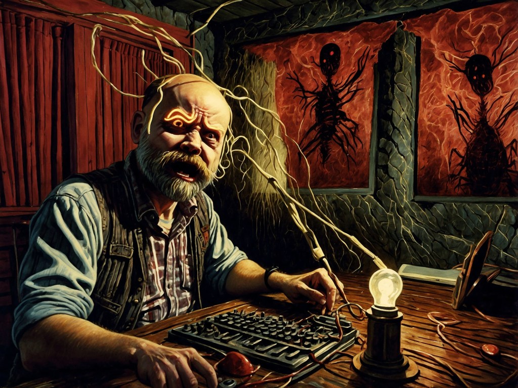 Inside, I seen myself as an old codger—or someone mighty nigh to it—bendin’ over an array of copper plates what shimmered like lakewater under pressure. He (I?) looked up and grinned. “You’re early,” he said. “We ain’t crashed the system yet.”