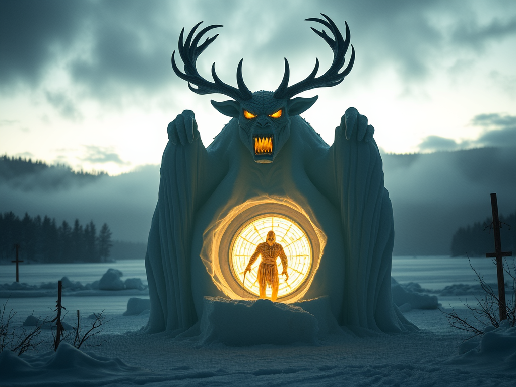 But don’t get too comfy—this ain’t your grandma’s cabin. Nope. The glow from your Wendigo ice sculpture? It’s a portal. And if you’re brave enough to stare into its eerie depths, you might find yourself in a Chateaugay Lake that’s a little… off. 🌀👀