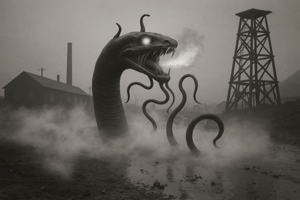 Locals recall old tales of a Finnish miner named Harl Veitonen, who perished in a collapse ‘round 1872. “He had strange blood,” Ephraim growled. “Said he could smell iron like bread bakin’.” The miner’s corpse was never recovered. Some say his soul swims still—now a blasphemy of flesh and filament, reborn in sludge.