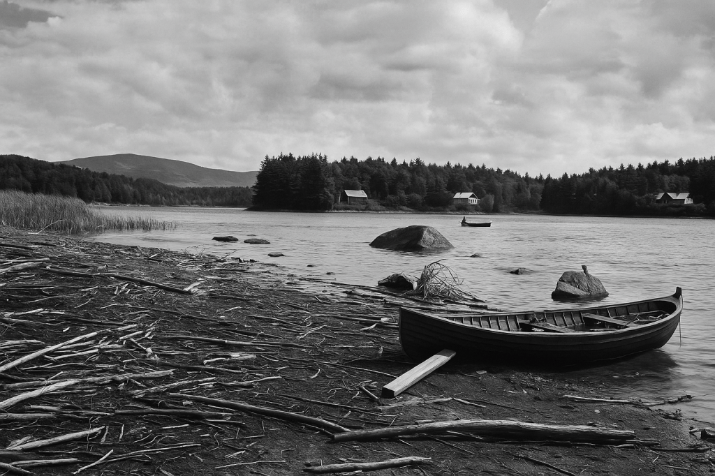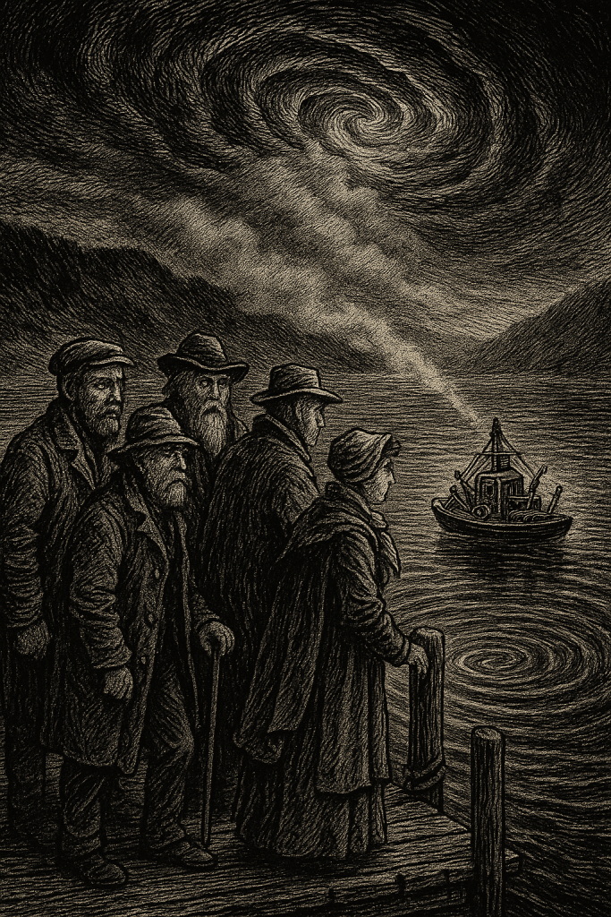 “Ayuh. Seen him alright. Leastways his boat. Funny kinda rig. Not a skiff. Not a punt. Ain’t like no fishin’ craft I seen neither. Real low in the water, y’see. Had somethin’ rigged underneath—barrel or drum or somethin’… but it hummed. Heard it. Like a bee trapped in a pickle jar. He’d row out to the Narrows, sit dead still. Nothin’. Then BANG—sounded like someone dropped an anvil into the lake. Next thing, he’s rowin’ back calm as you please, flippin’ through some little black notebook like a Methodist countin’ sins.”