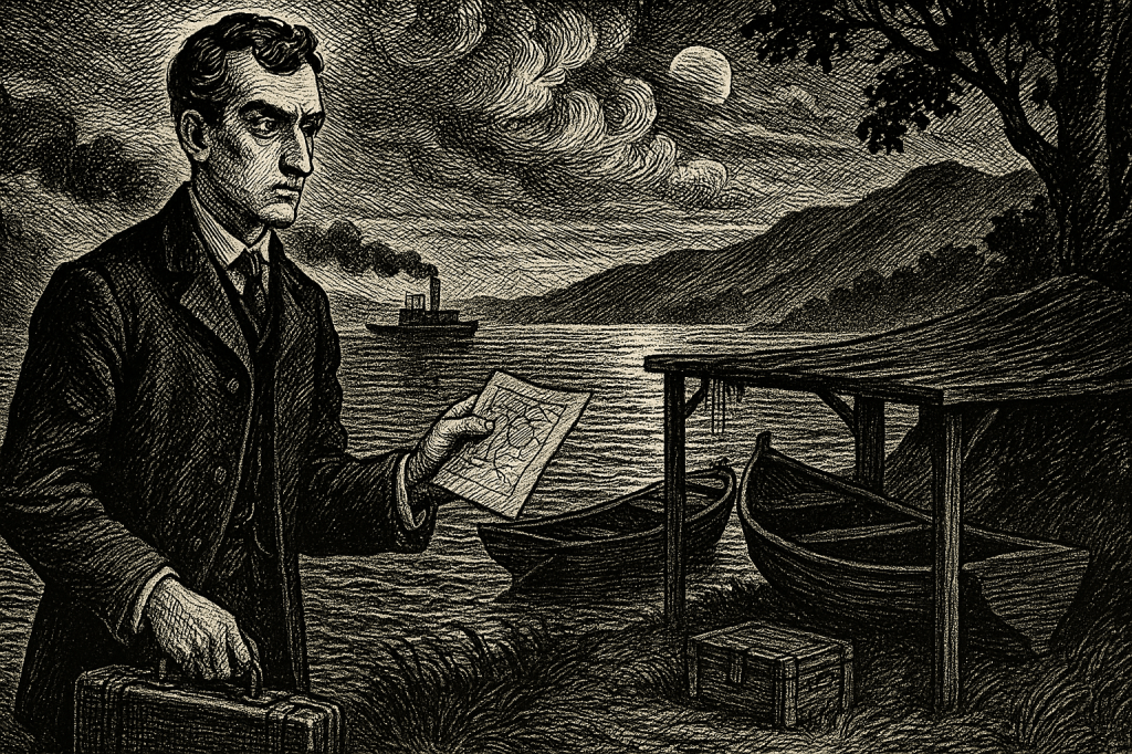 Room locked from the inside. Window open. Only thing left was the pocket watch chain coiled like a question mark on the desk—and a scrap of paper with a diagram that no one at the Banner House could make heads or tails of.