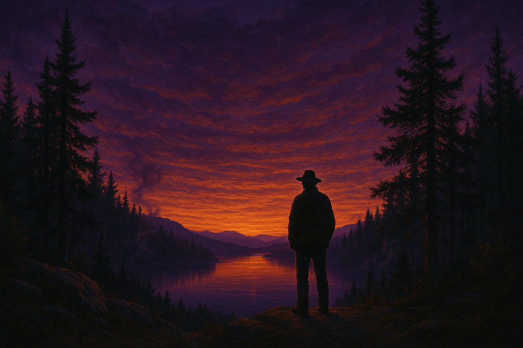 I see antlers in the mist. Not a deer. No — too tall, too still, and its mouth opens the wrong way, like a backward prayer. I freeze. I remember the time I saw a loon dive and not come up, like the lake swallowed its own song.