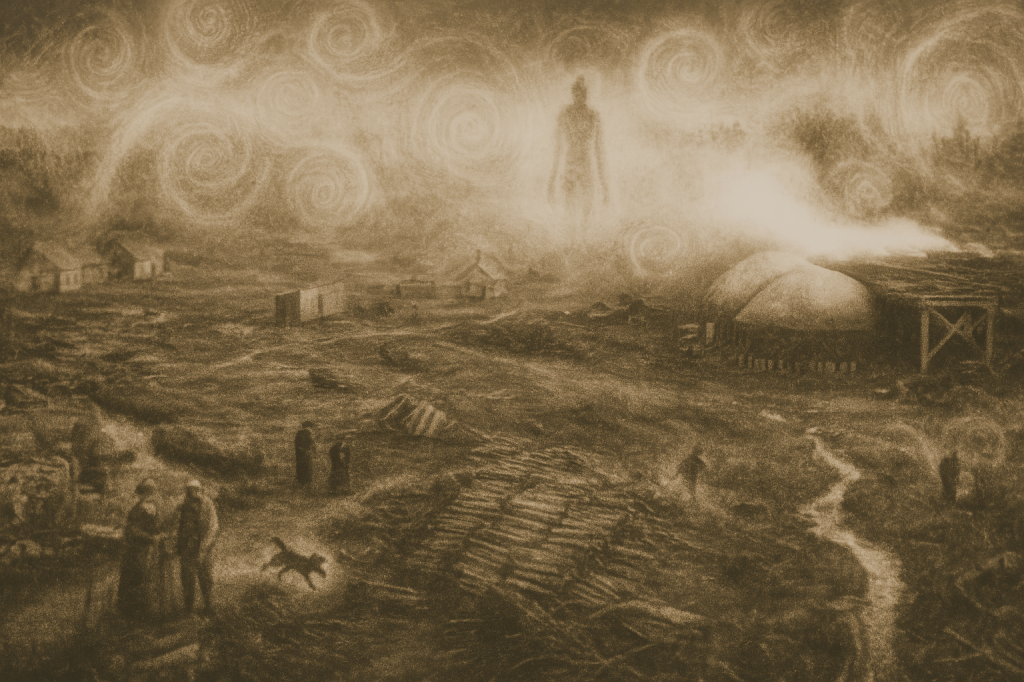 Josephine Percy struck up the anthem on her frying-pan fiddle while Abner banged the harmony out of an empty kerosene drum. Even the cryptid, whatever he is—Gitaskog or just an oddly patriotic driftwood shape—seemed to rise and hum in key.