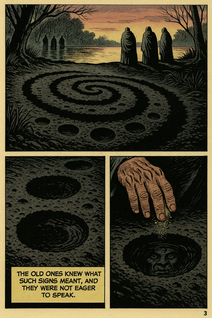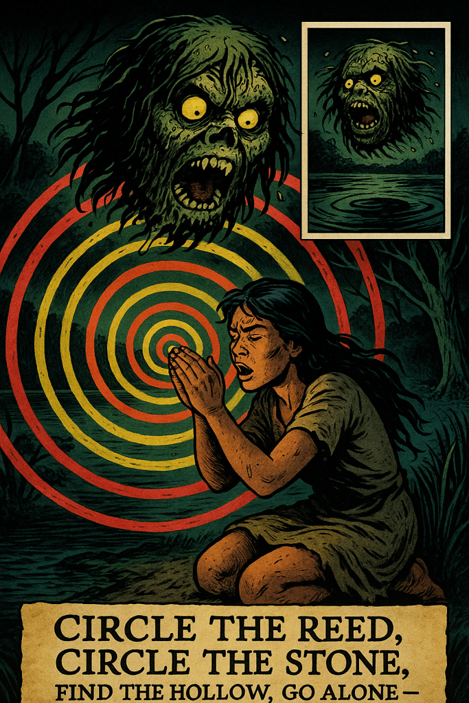 In the days that followed, the heat broke. Rain came, and the frogs remembered to sing again. But the elders built a small fire each evening beside the reeds, and none drank from the marsh unless they circled their hands thrice above the water, drawing the old shape to ward away what hungers.